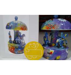 Tiovivo musical caballitos. Mecanismo de cuerda. Funciona girando la base del tiovivo