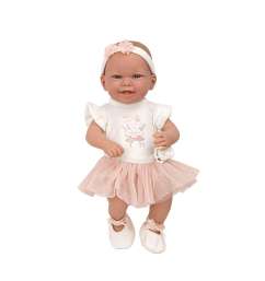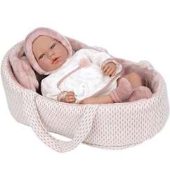 Muñeca elegance 40 cm andie rosa con capazo y llora