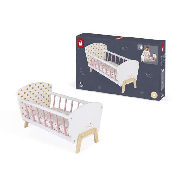 Con su almohada, su colchón y su funda de lunares dorados, ¡es perfecta para cuidar de su muñeco favorito! Adecuada para muñecos de hasta 42 cm (muñeco no incluido). Este producto desarrolla: la imaginación, descubrir y experimentar.