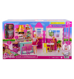 El juego establece Barbie y con un diseño colorido, y el moderno, las seis áreas del juego donde se puede dar rienda suelta a su imaginación sin fin, ayudar a Barbie para acomodar a los clientes en la mesa, luego ir a la cocina y comenzó a voltear las Hamburguesas en la parrilla, colocar los pasteles en el expositor giratorio para el postre, hacer una pizza en el horno y ver cambiar de color cuando se cocina. Con más de 30 piezas que tiene un montón de posibilidades de narración, ahora depende de usted para decidir si desea convertirse en una camarera, chef o cliente o por qué no los tres de la elección!!!