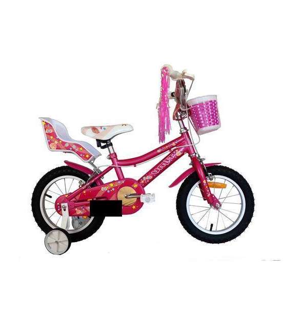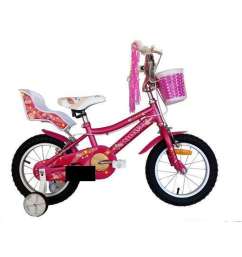 Bicicleta de 14" con cuadro de acero Hi Ten resistente, para niñas de más de 4 años que midan de 90-105 cm, rodamientos de acero, neumáticos de 14 x 2,125, llantas de aluminio, estabiciclos para iniciarse en el ciclismo, con guardabarros, cesta y portamuñecas. Fácil montaje, viene el 85% montada, con libro de instrucciones. Peso de la bicicleta 10 Kg.