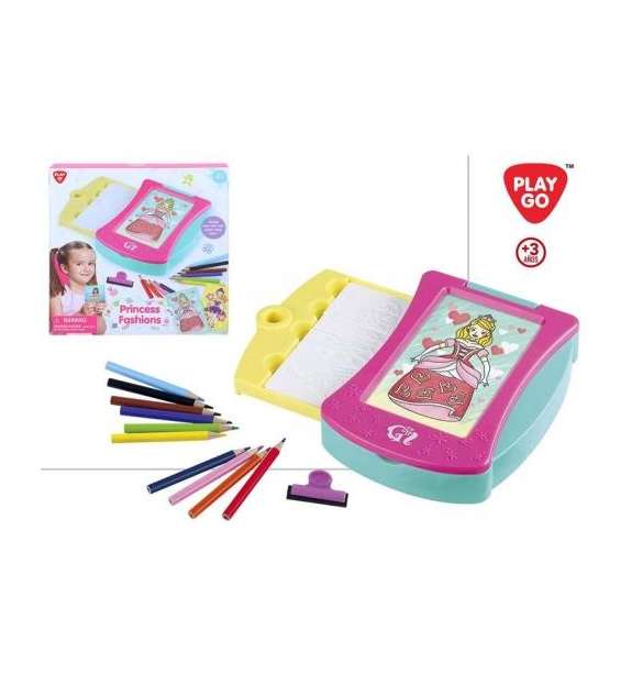 ¡Diseña los mejores vestidos de princesas! Inlcuye: 10 lápices de colores, hojas para colorear los dibujos, plantillas intercambiables y combinables y 1 rodillo para marcar las plantillas en el papel Fomenta la imaginación, la creatividad, la habilidad manual y la concentración Juguete recomendado a partir de 3 años