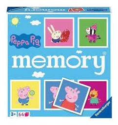 Este juego de cartas de la marca Ravensburger está orientado al desarrollo de la memoria y la concentración en niños pequeños, utilizando los personajes de la serie Peppa Pig.Mecánica: Los jugadores deben emparejar las imágenes idénticas de los personajes y elementos del mundo de Peppa Pig. La edad mínima recomendada es de 3 años.
