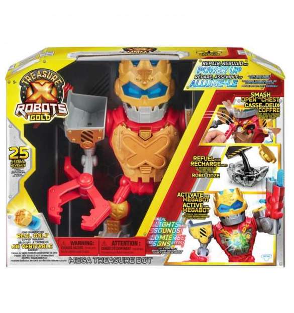 El Mega Robot tiene más de 25 niveles de aventura. Tendrás que descubrir todas las partes del robot. Desentierra sus armas y colócalas. ¡lanza misiles! Abre el contenedor y metele en el corazón el líquido negro para darle poderes. Descubre el tesoro y colócalo en el agujero de la izquierda del robot, presiona el botón amarillo otra vez… ¡Empezarán a sonar diferentes sonidos y se iluminará! Si lo mantienes pulsado tres segundos empezará a sonar música. Además, viene incluido un mini robot exclusivo que manejará al robot desde la cabeza.