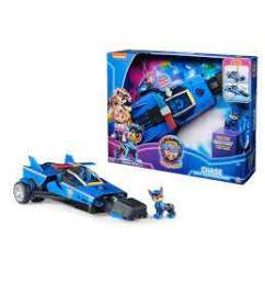 Forma equipo con Chase y su vehículo de rescate de PAW Patrol: The Super Movie para emocionantes aventuras de rescate inspiradas en la pantalla grande. Este coche de juguete de la Patrulla Canina mide más de 30 cm de largo, 15 cm de ancho y 10 cm de alto. Cuenta con un diseño elegante, una transformación de vehículo genial y emocionantes efectos de sonido y música, con luces intermitentes sincronizadas, que verás y escucharás en la película.
