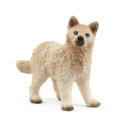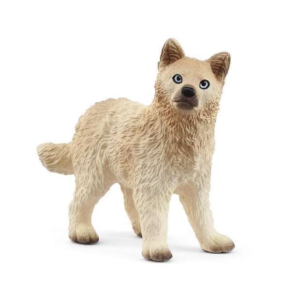 El pequeño cachorro de lobo ártico es monísimo. Tiene ya el espeso pelaje de los adultos para no congelarse en el Ártico, pero no es blanco como la nieve, sino de color crema. A pesar de todo, dependiendo de a dónde vaya se camufla bien. Sus ojos de cachorro son de un azul brillante y te miran como diciéndote: ¡Ven y juega conmigo!