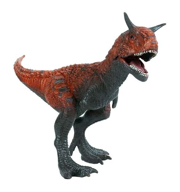 El Carnotaurus era un dinosaurio depredador carnívoro de los más peligrosos que se desplazaba sobre sus fuertes patas traseras y tenía largos dientes afilados. Tenía un hocico más redondeado que los demás, con unos dientes que parecían hojas de cuchillo curvadas.