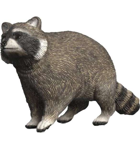 Coloración: Una mezcla de tonos grises, negros y marrones, aplicados con la técnica de pintado a mano de Schleich para un aspecto natural.Posición Activa: El mapache está representado sobre sus cuatro patas, con la cabeza ligeramente inclinada, sugiriendo curiosidad o búsqueda de alimento.