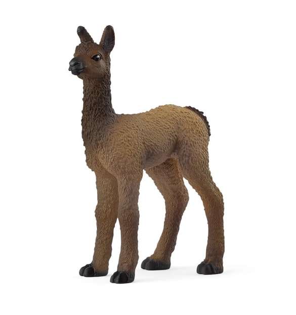 El pequeño potro de llama tiene un aspecto adorable con su abundante y esponjoso pelaje de color marrón. El cuello largo y la delicada cabeza son de color marrón oscuro, igual que las orejas puntiagudas. Solo la corta nariz y las patas son negras. Sus apacibles ojos brillan muchísimo. A lo mejor te deja que lo acaricies.