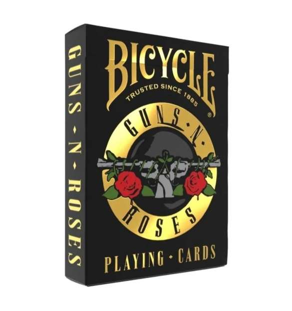 Esta baraja combina el diseño clásico de Bicycle con ilustraciones de Guns N’ Roses y detalles dorados que destacan en cada carta. Perfecta para fans de la banda, coleccionistas y amantes del estilo rockero.