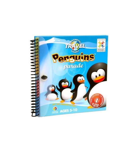Penguins Parade es la nueva aventura en el Polo Sur. Sólo tienes que conseguir que estos simpáticos pingüinos formen una fila pero no te lo van a poner tan fácil. No puede existir ningún espacio entre ellos y no se pueden colocar boca abajo. Un juego de ingenio con piezas magnéticas y en forma de cuaderno que es perfecto para llevar de viaje. +5 años 1 jugador 48 desafios