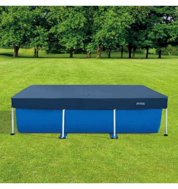 Cobertor rectangular INTEX de tamaño 2,70x1,63 cm para piscinas desmontables INTEX Metal Frame de 2,60x1,60 cm . El cobertor está fabricado con vinilo resistente y cuenta con 20 cm de voladizo. Dispone de agujeros de drenaje repartidos en la superficie para evitar la acumulación del agua de la lluvia y cuenta con cordón de agarre para fijarlo a la piscina. - Protege el agua de tu piscina y evita que entre suciedad con este cobertor INTEX rectangular color azul - Medidas: mide 270x163 cm y tiene voladizo de 20 cm - Compatibilidad: piscina Metal Frame rectangular de 260x160 cm - Cierre seguro: el voladizo cuenta con cordón de agarre para fijarlo a la estructura de la piscina de forma segura - Resistente y duradero: está fabricado de vinilo resistente y cuenta con agujeros de drenaje repartidos por la superfiie para evitar que el cobertor se dañe por la acumulación de agua