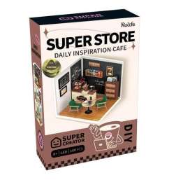 Robotime Rolife Super Creat plástico DIY casa en miniatura cafetería. +8 años