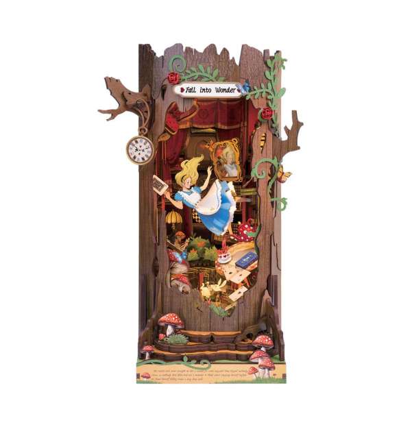 Adéntrate en un mundo de fantasía con el Rolife Fall into Wonder, un diorama DIY para estanterías que transforma cualquier librería en un portal mágico. Con un tronco de árbol como fachada, elementos retro, espejo infinito, setas interactivas y luz LED integrada, este kit DIY estimula la creatividad y ofrece horas de diversión. Fácil de montar gracias a sus piezas numeradas, es ideal como regalo, decoración o pasatiempo que combina imaginación, paciencia y orgullo de crear algo único con tus propias manos.