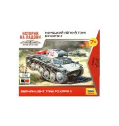 Características del producto: Escala 1/100. Tamaño: 4, 2 cm. 5 piezas. Descripción del producto: El PzKpfw II fue un tanque ligero alemán de la Segunda Guerra Mundial. Los primeros prototipos del vehículo se crearon en 1934, y la producción en serie continuó en el período 1935-1944, finalizando con la producción de unos 1.850 automóviles. La versión A del tanque estaba propulsada por un solo motor Maybach HL 57 TR con una capacidad de 130 HP. Estaba armado con 1 cañón KwK 30 de 20 mm y 1 ametralladora MG 34 de 7,92 mm en la torreta. El PzKpfw II se creó como resultado de un concurso anunciado por la Oficina de Armamentos de Alemania para un tanque ligero de hasta 10 toneladas, armado con un cañón de 20 mm. El concurso fue ganado por MAN en cooperación con Daimler-Benz. La producción en serie comenzó en 1935 y durante ella se crearon numerosas variantes del tanque PzKpfw II.