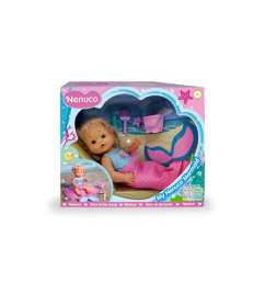 ¡Nenuco de 35 cm y cuerpo duro lista para ir a la playa! Nenuco viene con una toalla de playa que se convierte en una cola de sirena. Incluye accesorios para jugar en la arena: cubo, pala y estrella de mar. Preciosa muñeca con pecas y pelo rubio
