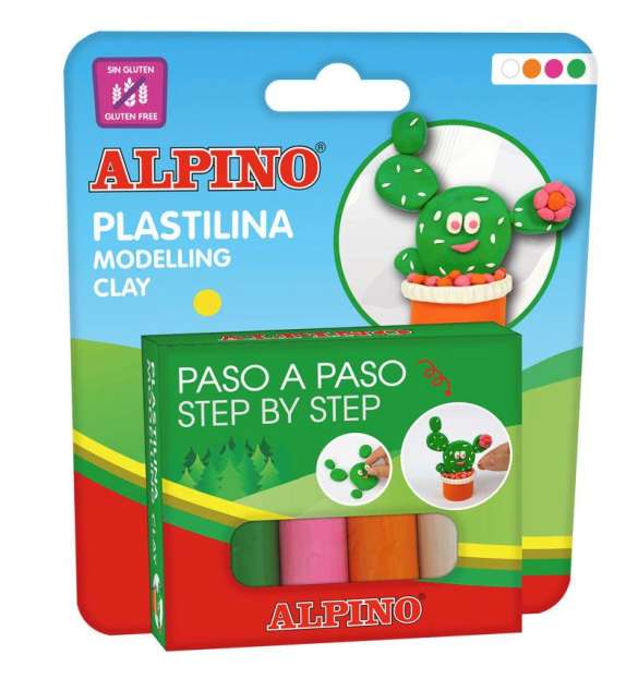 Kit de plastilina de 4 barras de 25 g para crear paso a paso tu figura. Colores del set de plastilina: verde, rosa, naranja y blanco.
