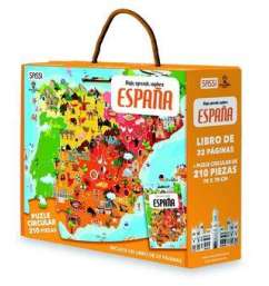 El maletín contiene un libro de 32 páginas y un puzzle circular de 210 piezas y 70x70 cm.
