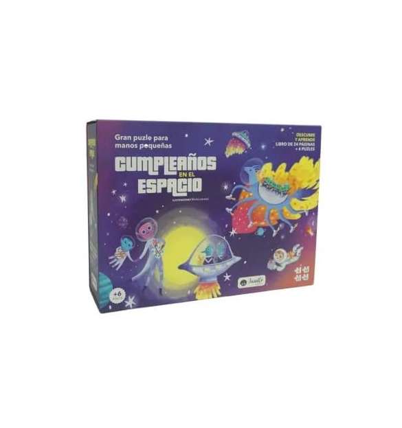 Cumpleaños en el espacio, Libro+4 Puzzles. +6 años