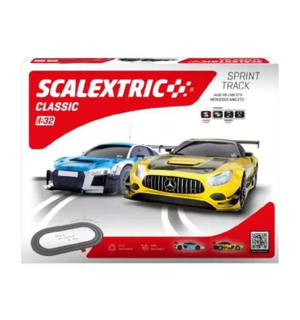 Scalextric Sprint Track a escala 1:32. Circuito completo con dos coches, mandos y transformador. Ide
